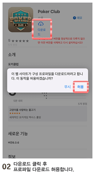 - 07[ iTunes] 에서 페이지 열기 클릭 후 [ Poker Club ] 설치를 클릭하세요